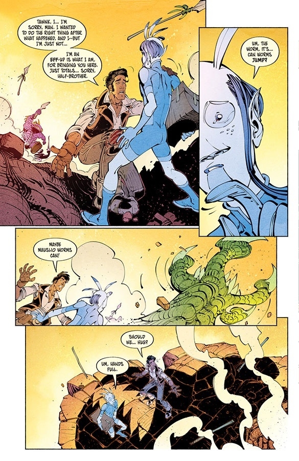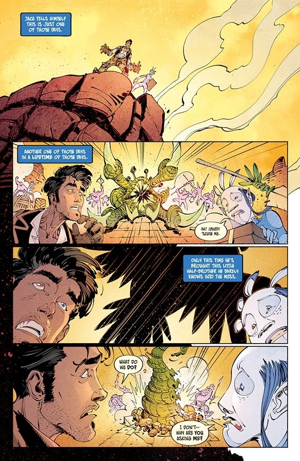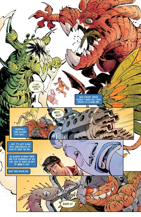 The quick errand to snag some bird for a rich weirdo’s personal zoo hasn’t gone as planned. If Jace and Tawnk aren’t eaten by dirt pirates, will they even get paid, what with Tawnk’s pesky conscience getting in the way? Seriously though, Jace is failing at this whole responsible big brother thing.