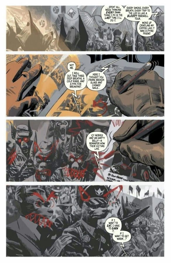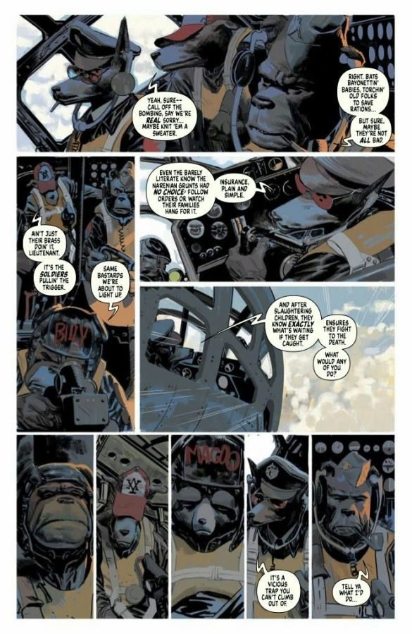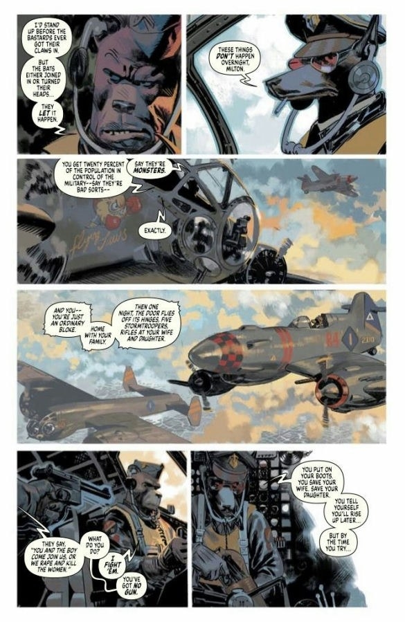 SHOT DOWN. HUNTED. OUT OF TIME. Set in a brutal, fully painted world of anthropomorphic animals—equal parts Inglourious Basterds and Watership Down— ESCAPE is a gritty, bullet-riddled journey through war’s scorched aftermath. It’s about the violence we inflict, the souls we try to save, and the courage it takes to crawl out of fire. From the creative team of New York Times bestselling author RICK REMENDER (DEADLY CLASS, Uncanny X-Force) and powerhouse DANIEL ACUÑA (Captain America, Black Panther)—the duo behind Marvel’s Uncanny Avengers—comes a savage, full-throttle wartime thriller where survival isn’t given… it’s taken. Milton Shaw is a battle-hardened bomber pilot, flying missions over a war-torn world ruled by a ruthless empire. But when his plane is shot out of the sky, Milton wakes up behind enemy lines—in the smoldering ruins of a city he helped burn. And in less than 24 hours, his own side is dropping the big one to finish the job. Now, injured, unarmed, and being hunted through enemy streets, Milton’s only shot at escape comes from the unlikeliest place: a grieving father and his son—civilians shattered by the same fascist regime that rules this land with an iron claw. Enemies by blood. Allies by circumstance. Together, they’ll have to fight their way out before the bomb drops and erases everything… and everyone. Collects ESCAPE #1-6.