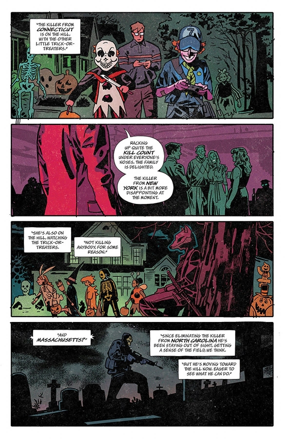 "Trick or treat" has never had deadlier stakes as Craig and Jason unknowingly go door to door with this year’s youngest killer. And a high score for G4m3r_K1d means a very bad night for everyone else… Multi-hyphenate talent Tyler Boss (You’ll Do Bad Things) and breakout talent Gavin Fullerton (The Closet) join James Tynion IV and Michael Walsh for Exquisite Corpses’ most gut-wrenching chapter yet!