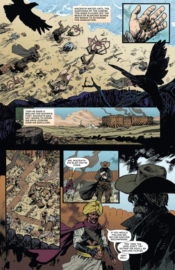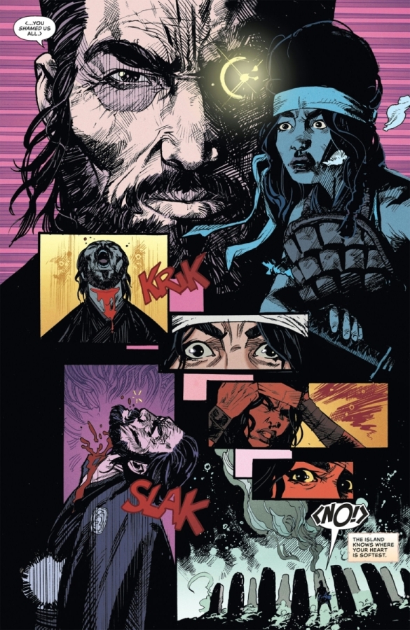 MacRaith is almost murdered in the depths of the island while Asami climbs the highest peak and is confronted by a ghost from her past. Each comes away with a key to escaping the island they're trapped on. Mohan tightens his grip on the cult of warriors, and our samurai and gunslinger experience the first sparks of love. See you back in hell this September!