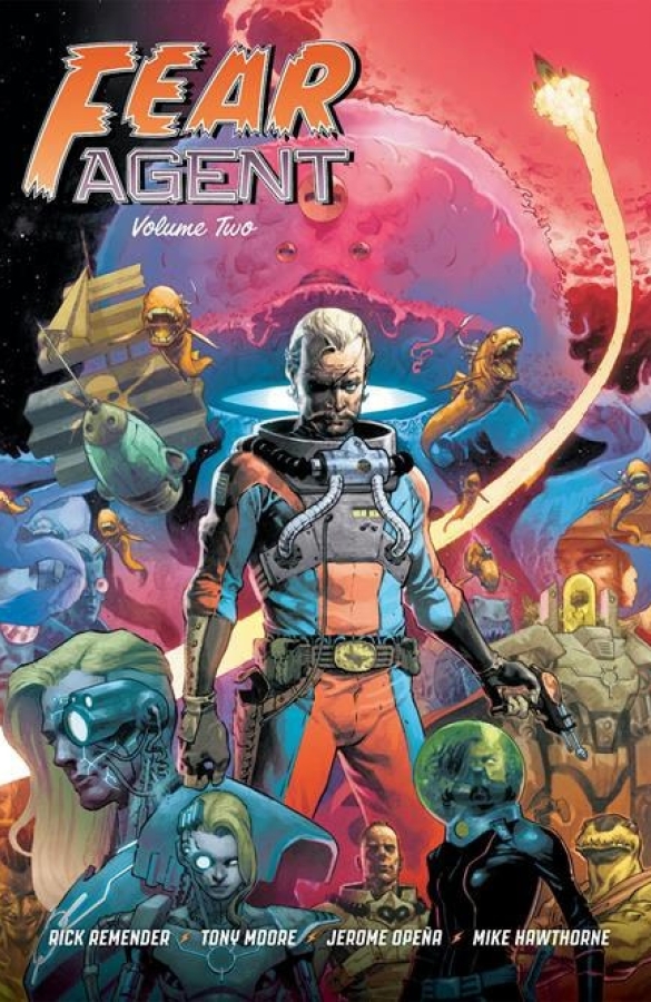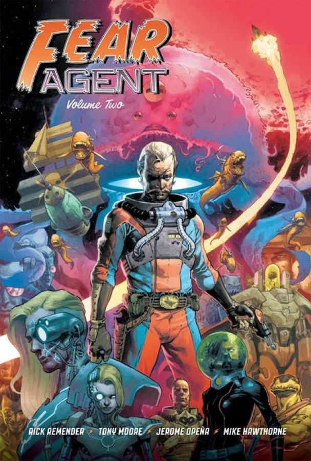 When down-and-out alien exterminator Heath Huston stumbles upon an extraterrestrial plot to wipe out humanity, he must put down the bottle and resume his role as peacekeeper—as the last Fear Agent. Fan-favorite writer RICK REMENDER (DEADLY CLASS, LOW) is joined by superstar collaborators TONY MOORE (THE WALKING DEAD, Venom) and JEROME OPEÑA (SEVEN TO ETERNITY, Uncanny X-Force) in the critically acclaimed series that redefined science fiction.