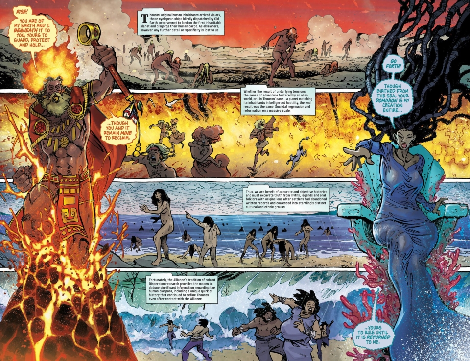 Join FREE PLANET cocreator Aubrey Sitterson and innovative cartoonist Ilias Kyriazis (Heavy Metal, Raymond Chandler’s Trouble is my Business) for a millennia-spanning exploration of the planet Thouros, its history of unceasing warfare, and its eventual absorption by the Interplanetary Development Alliance.