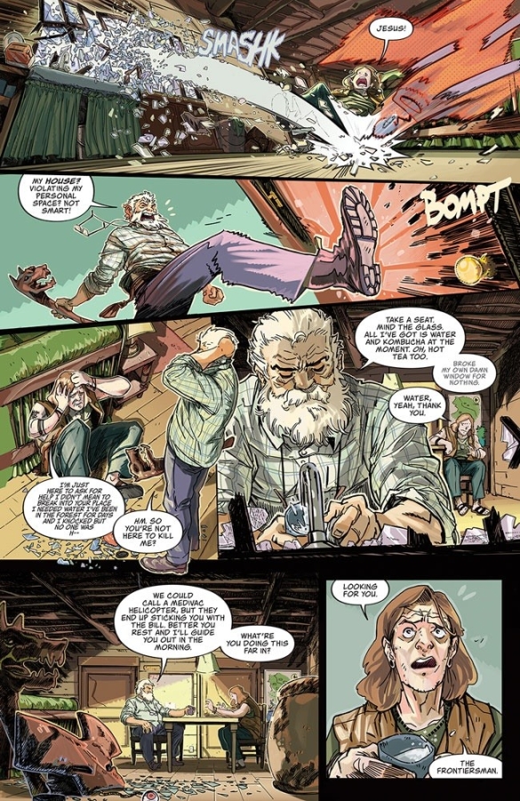 PATIENCE! CONVICTION! REVENGE! PATRICK KINDLON & MARCO FERRARI return with an all-new ONGOING SERIES! Classic Green Arrow-style adventure blends with the thoughtfulness of Concrete in a superhero odyssey for mature but uncynical readers! Frontiersman is coaxed out of retirement by an environmentalist group, only to find that being a spokesperson makes him a target for old and new enemies alike! For the superhero reader looking for more.