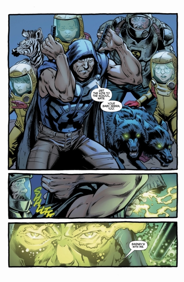 Trouble brews within the last civilized town in America. The cause: Tariq Geiger, who attracts too many bounty hunters wanting the enormous sum for his corpse. But when Geiger loses control, will he ultimately become this town’s protector…or its doom? Plus, the return of Junkyard Joe’s creator and enemy, The Custodian. But what are his ties to Geiger? And Redcoat?