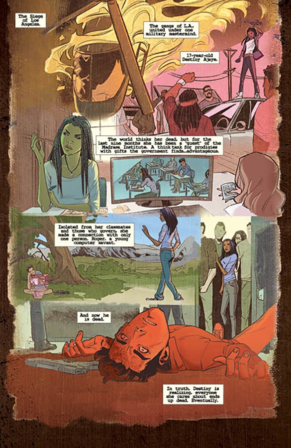 After chafing at the rigid rules of the Madrasa Institute, a government school for wayward prodigies, and losing her only friend, Destiny agrees to spearhead a mission south of the border. Her target: the Mexican drug cartels. But, given that the greatest military mind of her generation is no one’s pawn, what is she REALLY after? And who’ll risk death by getting in her way? From writers MARC BERNARDIN and ADAM FREEMAN (Castle Rock, Alphas, X-Men Origins: Nightcrawler, The Authority, The Highwaymen) and rising-star artist ROSI KAMPE comes a sequel that promises to set Destiny’s world—and ours—ablaze.