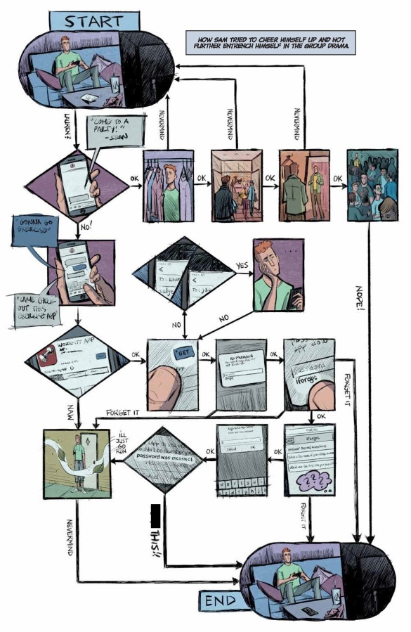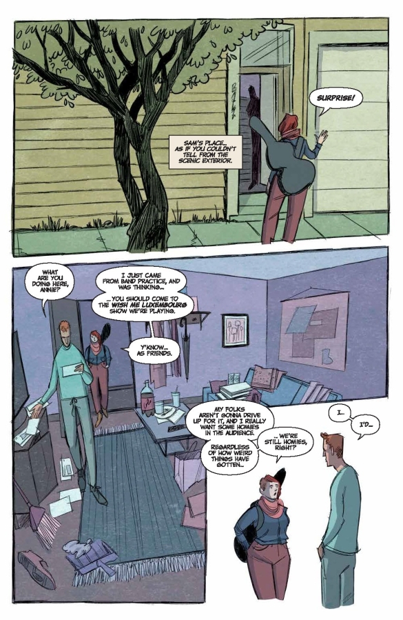Sam and Jack’s BFF-dom deteriorates, Lauren’s band Nipslip teeters on the verge of a breakup right before their most important gig, and everyone’s dealing with the poor decisions they made while drunk. Add to that, Sam's coworker Tim generously blesses the group with gifts of the psychedelic kind. What could go wrong? With another oversized issue bursting with extra story pages...a whole lot!