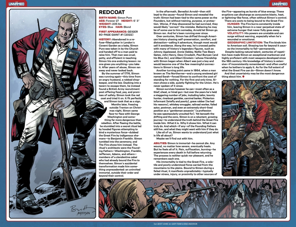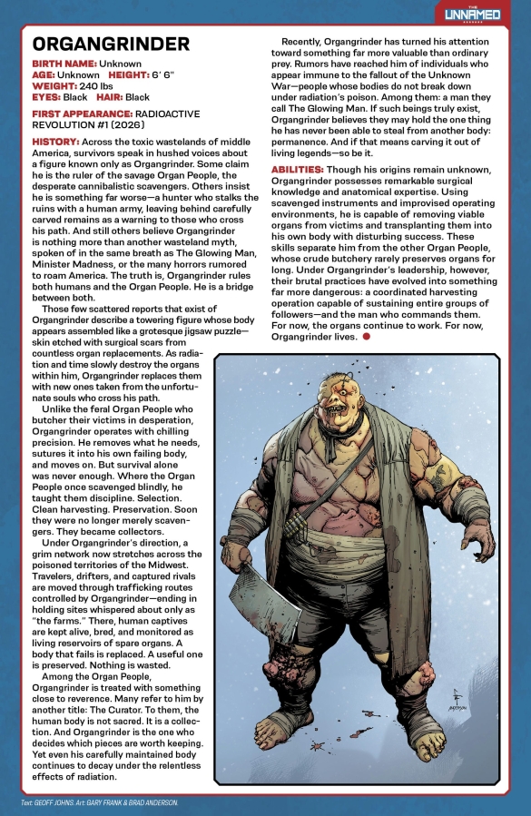 How old is Recoat? Who is Widow X? How does the Time Tank tie all of the Unnamed together? This limited series continues to answer those question and more, collecting all-new entries teasing tantalizing stories to come from across its hit titles! With interior character art from Ghost Machine’s all-star artists, don’t miss the outstanding classic homage covers that let you decide what ’80s inspired guidebook look you want to collect! This second volume covers the second half of The Unnamed from Johnny Appleseed to Zigzag the three-eyed zebra!