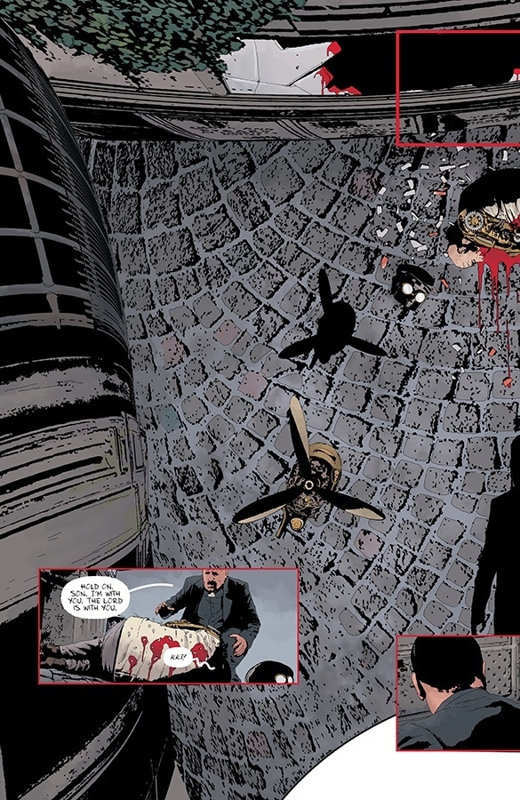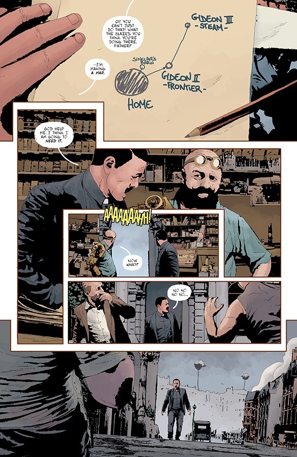 "STATIONS OF THE CROSS," Part TwoFather Burke’s hunt for The Laughing Man killer goes from the Old West to a steampunk version of Gideon Falls (complete with an otherworldly version of The Black Barn) where "The Bishop" is a new piece added to the cosmic chess board.