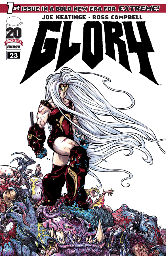 ONCE AND FUTURE,' Part One EXTREME'S ORIGINAL WARRIOR GODDESS RETURNS! After missing for almost a decade, Glory's whereabouts are uncovered by a lone reporter, but the globe-spanning conspiracy keeping her hidden from humanity could make her return more dangerous than anyone ever anticipated! This first issue of an brand-new saga written by Eisner & Harvey-award winner JOE KEATINGE and illustrated by Wet Moon and Shadoweyes creator ROSS CAMPBELL sets up Glory's future by expanding on her past in a way promising to shock long-time fans and excite all-new readers!