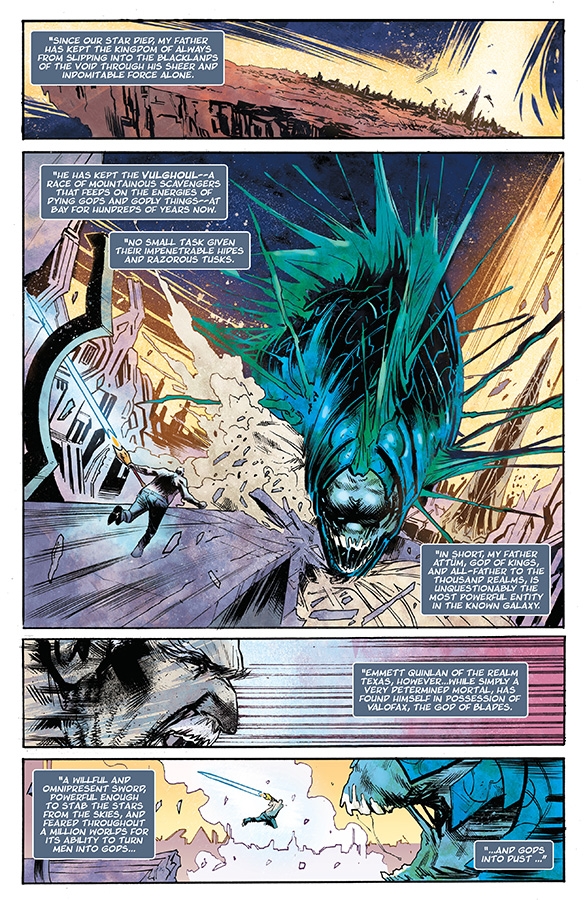 MINISERIES FINALE Our story comes to an earth-shattering conclusion as Valofax meets its maker, Roy learns what it means to be a father, and Emmett Quinlan confronts God in the dying Kingdom of Always…