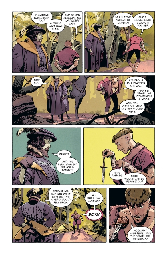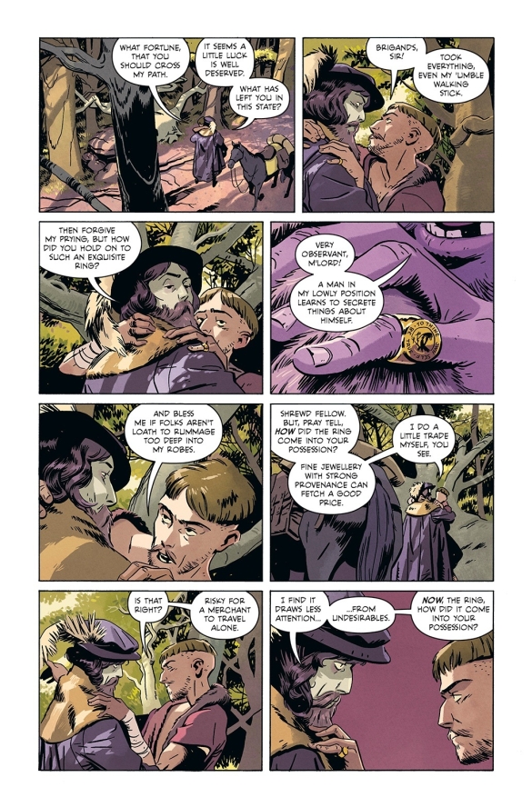 Stripped of their possessions, the fate of the quest balances on the tip of Pitt’s storytelling tongue. Meanwhile, deep in ancient woodland, grace, guile, and a murderous blade stalk our heroes. With one eye always on her legacy, will Matilde see the danger coming?