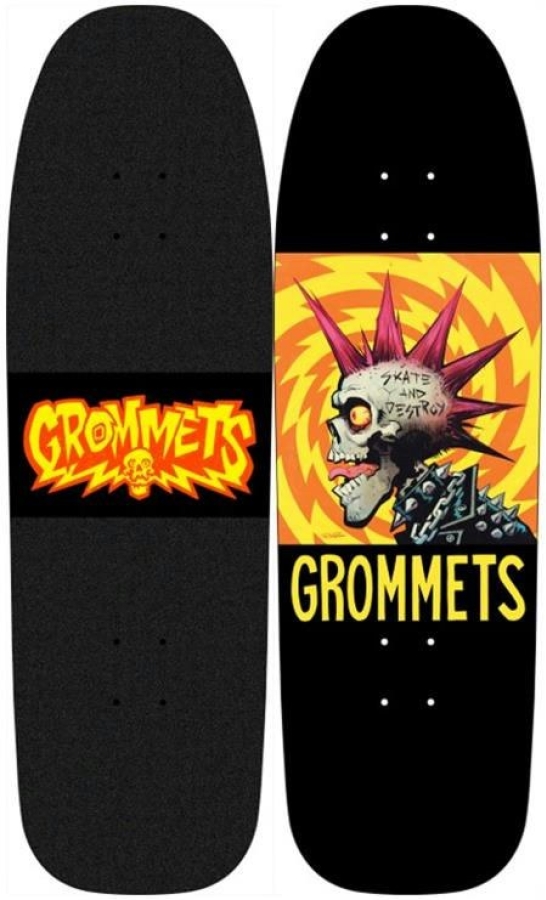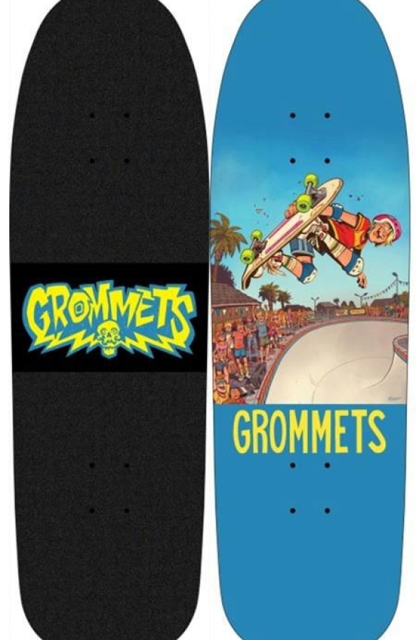 Make your friends jealous of your street cred when you roll by on your limited edition GROMMETS skate deck! Giant Generator presents the GROMMETS skate deck, featuring art from the multi-sellout 80s coming of age comic series about friendship and skateboard culture from Rick Remender, Brian Posehn and Brett Parson.
