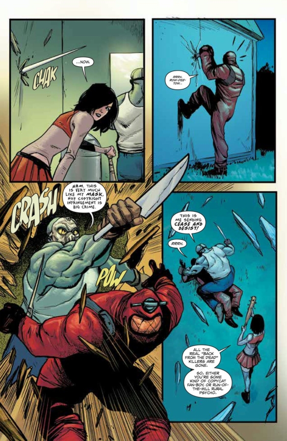 When Cassie and Vlad encounter an unusual slasher, they're led to the front door of cyborg former super soldier Superpatriot! Now, the horror hunters are drawn into a race against time alongside a lost super-team in a tour of the gritty underbelly of the Image Universe!