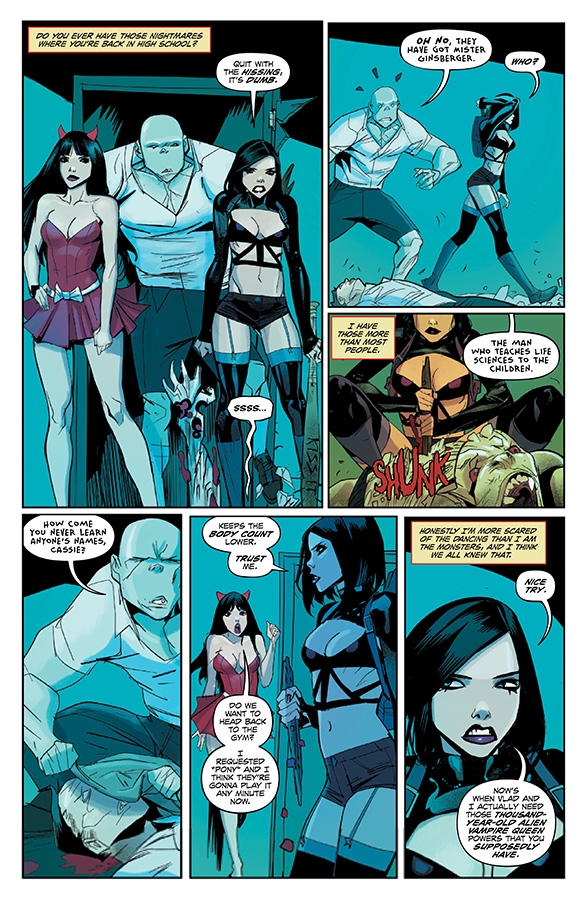 More mayhem, murder, monsters, and mankinis as Cassie and Vlad team with Vampirella to save a nice little town from its dark history, while discovering more about Cassie’s lineage.
