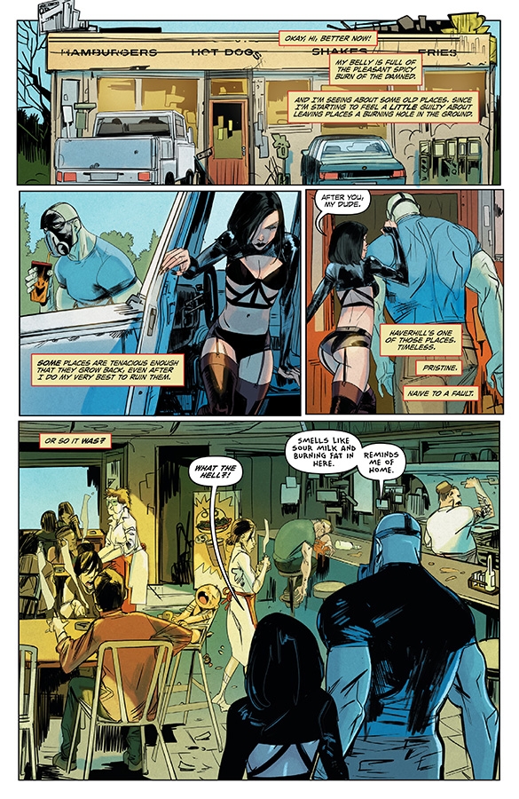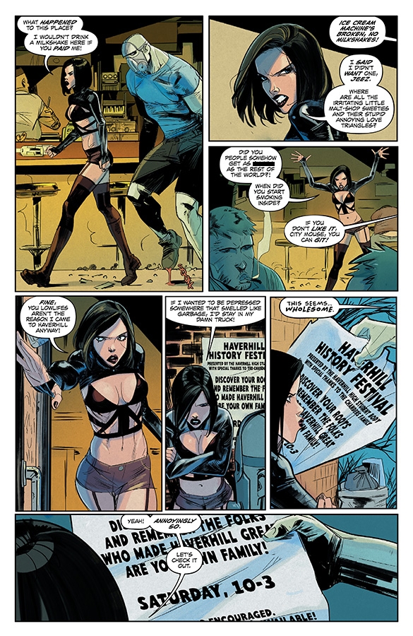 Cassie and Vlad are drawn back to the little town of Haverhill! But the innocent town has suddenly gotten very sexy, especially with Vampirella dropping in.