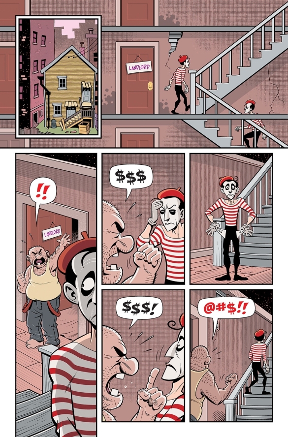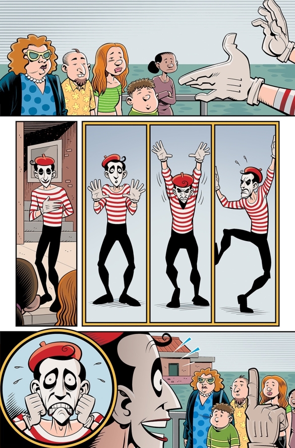 Our less-funny-than-the-title-suggests clown anthology continues with a silent mime story illustrated by legendary cartoonist ROGER LANGRIDGE.