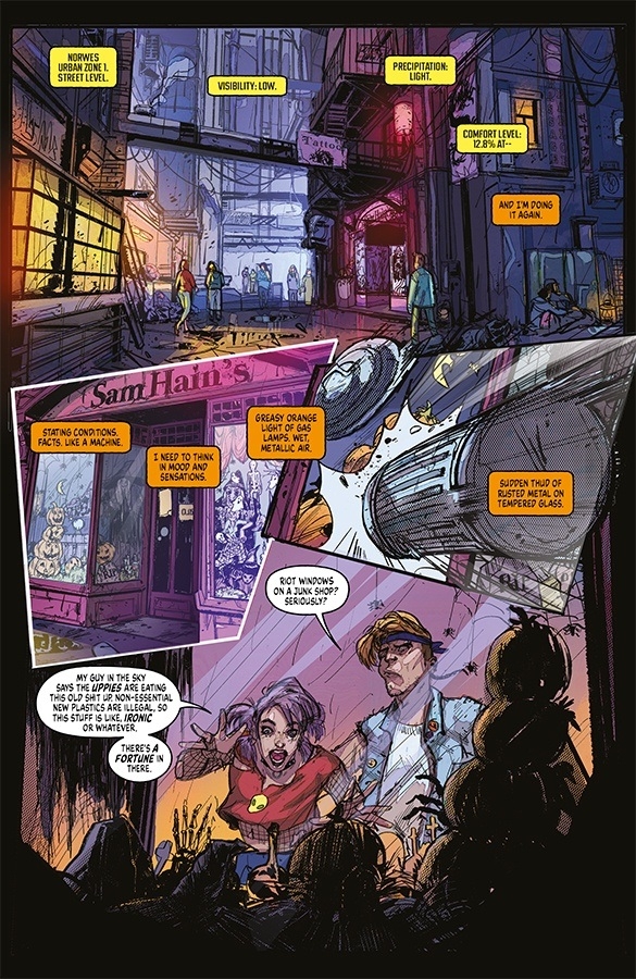Why sell your soul...when you can buy a new one? In a corporate-ruled world where class inequality is greater than ever, a desperate, lonely populace is drawn to neo-spiritualism and hedge magic. When their teenage daughter is murdered, the Marks family is left asking the gods what they did to deserve this. But their android maid, Which-Where, has a different approach. Perhaps if she asked the devil... A new futuristic miniseries by acclaimed creator TIM SEELEY (HACK/SLASH, REVIVAL, Nightwing, Superman vs. Lobo) and rising star ZULEMA SCOTTO LAVINA (Red Sonja, The Little Mermaid)! THE MAGIC ORDER meets Do Androids Dream of Electric Sheep? in this dark mashup of witchcraft and sci-fi.