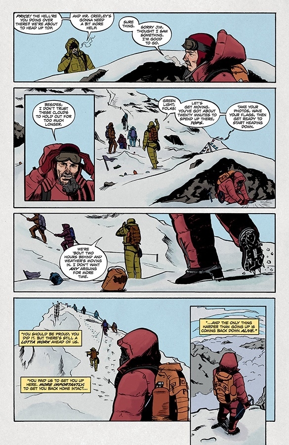 People die every year on Mount Everest. This year will be murder.Zan Jensen is on the run from her past. For now, she works as a climbing guide for rich tourists in Kathmandu. And on the side, she and her partner Haskell moonlight as high-altitude graverobbers, extorting money from the families of the many dead bodies that litter the peaks of the Himalayas. But when a body shows up at the summit of Mount Everest with a jackpot of state secrets embedded in its skin, they’re put in the crosshairs of a government agency bent on recovering the body—and eliminating any witnesses. Collecting the two-time Eisner-nominated comic by CHRISTOPHER SEBELA (CROWDED, SHANGHAI RED, We(l)come Back) and artist IBRAHIM MOUSTAFA (Jaeger, Mother Panic, James Bond), HIGH CRIMES is a high-altitude noir that’s been called "the perfect thriller, with big stakes, damaged characters, dark pasts, and just the right ratio of humor-to-corpses" by CHELSEA CAIN, the New York Times bestselling author of the Archie Sheridan and Gretchen Lowell series.