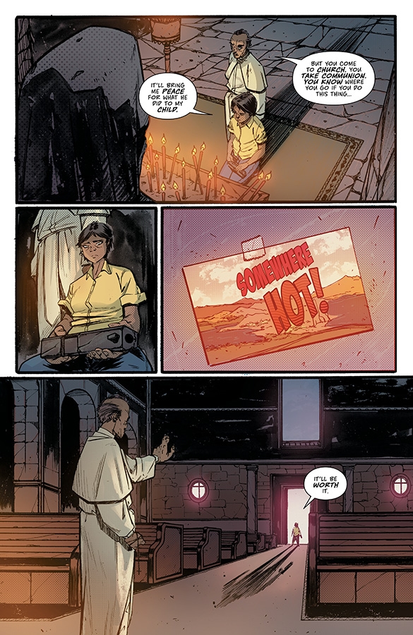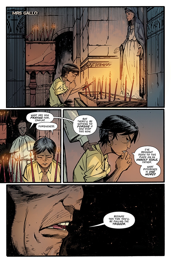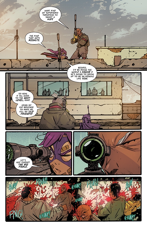 IT'S THE COLOMBIAN SHOWDOWN. In the bloody climax to her Colombian adventure, Hit-Girl makes her last stand against Palmira's gang lords. She's enslaved Mano as a sidekick, but will he finally crack and turn weapons on his own people? HIT-GIRL #4 is an action-packed gorefest—the bloodbath before Mindy sets off to her next destination.