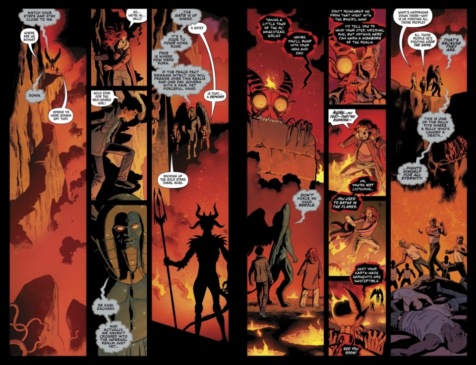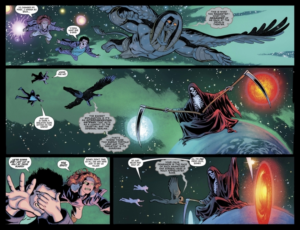The issue you’ve been waiting for! Sidney—also known as THE ADJUDICATOR—continues to blow the minds of Zach and Rose by giving them a guided tour of their true birthright and birthplace: Heaven and Hell! Will they come to embrace their new normal? Or reject it?