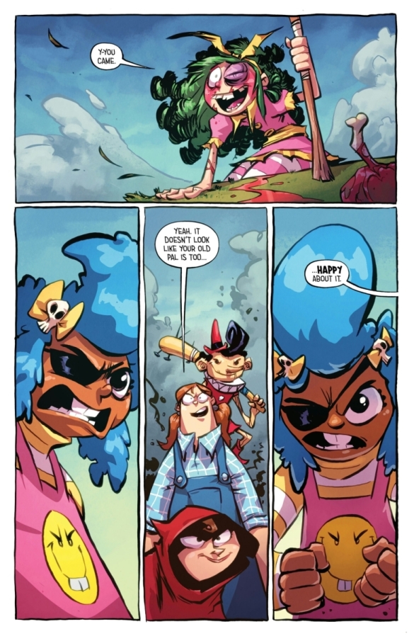 Will Gert and her soldiers fall? Will Dorothy Gale and the Once Upon a Timers make it in time to stop Happy and her horde? Will anyone live happily ever after in the final issue of HAPPY END GAME?!?! Find out in the dramatic conclusion to the biggest comic book event of whatever Wednesday this issue comes out!