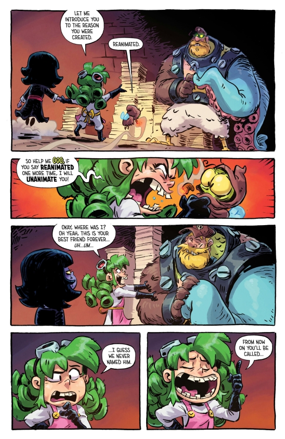 Once you've mad-scienced your way to a Frank-like monstrosity, there's just one thing left to do... No, not make it a bride, that's gross. You gotta find it a friend! Skottie Young, Derek Laufman, and the IHF crew continue their gothic horror experiment in THE BFF OF GERTRUDENSTEIN!