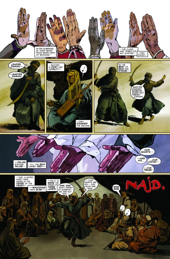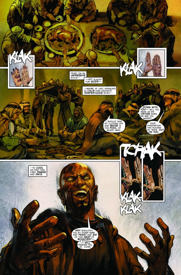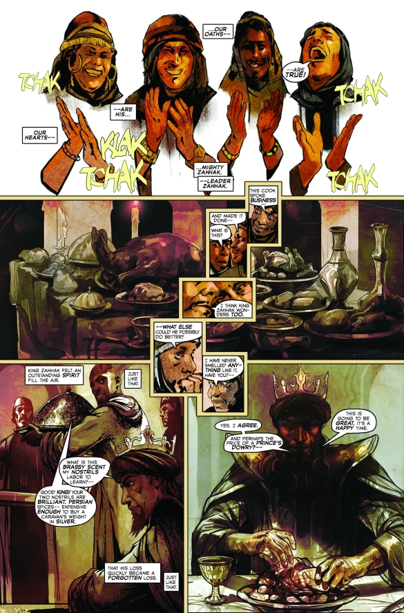 With a bogus rite of honoring the king’s glory, the cook asks to kiss Zahhak’s shoulders. Hafez tells Tom how, back in Tehran, he and his father clashed over a pursuit of Zahhak’s stage play—how he didn’t know enough.