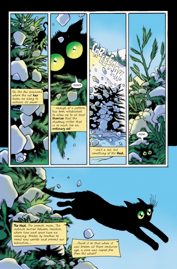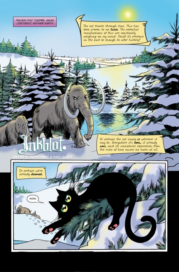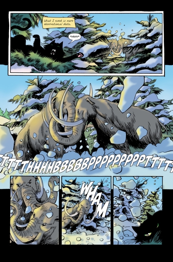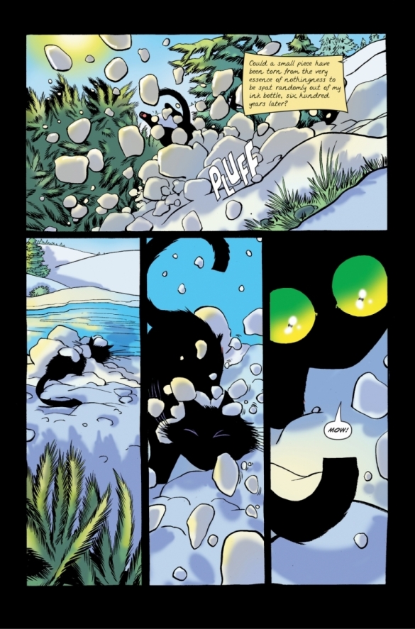 The cat watches as 10 children bury their parents in a primordial forest. It catches the eye of Inos, the youngest, whose curiosity leads him on a merry chase for the cat, which ends with the family being cornered by the beast that killed their parents.