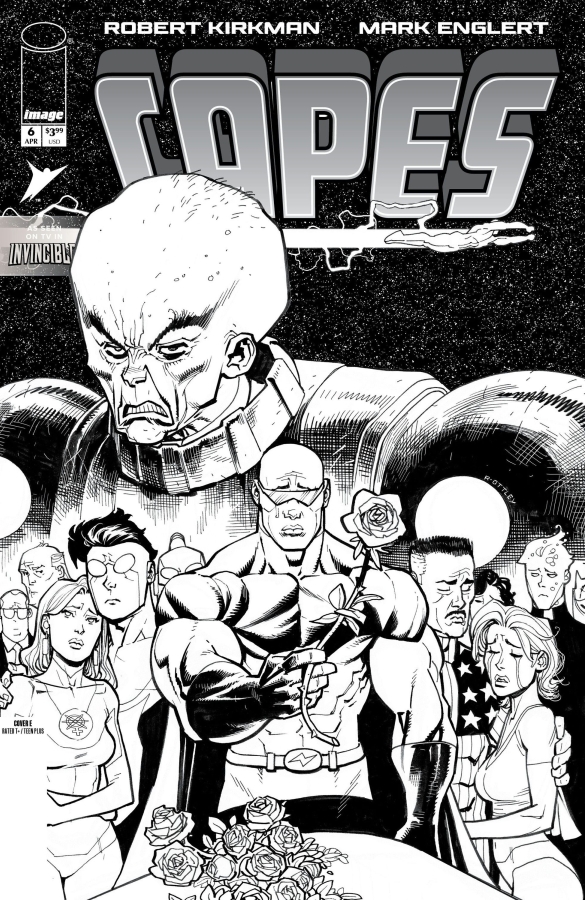 RE-PRESENTING ROBERT KIRKMAN AND MARK ENGLERT’S CORNER OF THE INVINCIBLE UNIVERSE! A special remastering of CAPES, featuring new art and dialogue! END OF STORY ARC It’s all been leading to this as a new hero is born in the INVINCIBLE UNIVERSE! But what does this mean for the fate of CAPES, INC?
