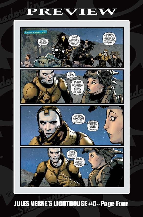 In this final issue, Vasquez and Captain Kongre go head-to-head in a battle to decide the future of the human species. The Seraphim Suits are the ultimate battle armor, but wearing them means feeling the pain of every blow, and the pain only stops when one of them is dead.