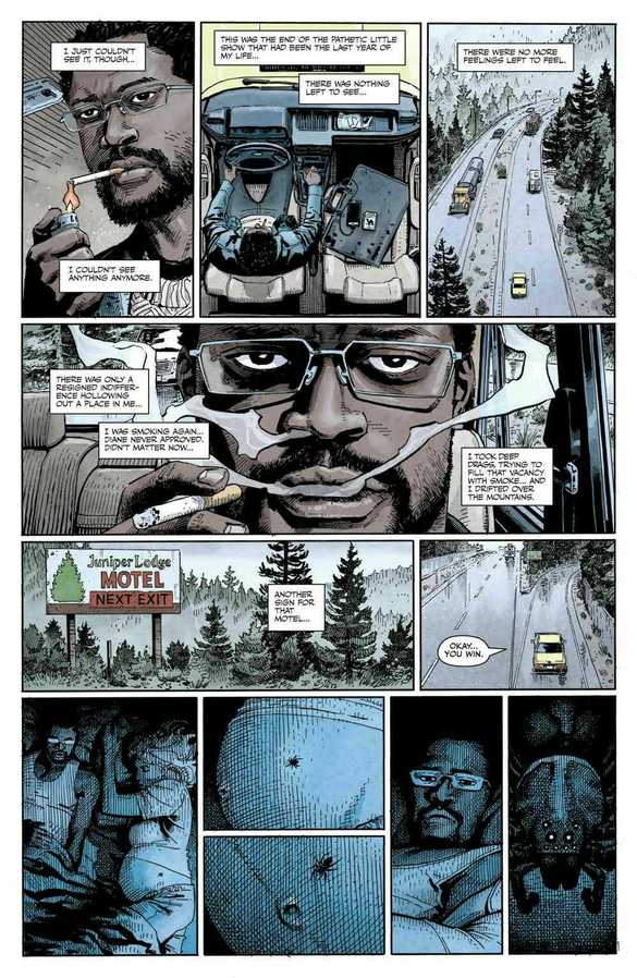 A twisted town in the Old West sacrifices one of its own every twelve hours at the demand of a demonic gun. A man finds his mind is trapped in the brain of an insect, and believes the normal world he sees is a delusion. An abandoned roadside motel is home to an entity that has captured the imagination of a passing comic book artist and is drawing him back.