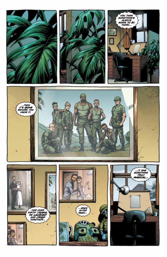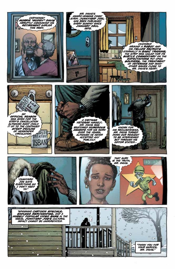 Look Insidenewspaper strip. But the tragedies of Vietnam and visions of a strange robot solider that saved his life still haunt him. But dreams become reality when Joe mysteriously shows up on Muddy's doorstep warning us of a new and impending war.
