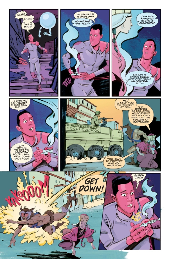 It’s all-out war in Kaptara! Can our heroes defeat the invading forces with the help of…BEEFMASTER and MR. KISSES?! And where’s that hunk, Manton? Can Keith find him in time?