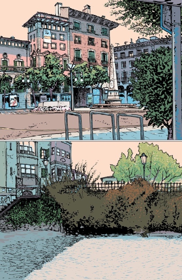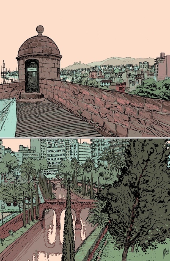 In this second issue, Cata explores her newfound ability to fly, landing at a plaza in Palma where real-life Xisco and Cata are having a conversation that plunges her further into the depths of despair. When an ever-cheeky Karmen pops in to intervene, she and Cata sit down for a philosophical heart-to-heart.