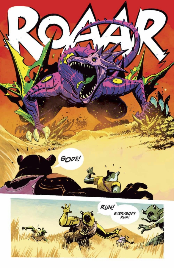 Kaya and Jin’s relationship has been shattered! Now find out what awaits our heroes as Jin and Razel travel to the frozen north to confront the Mother Oracle of the Robot Empire, while Kaya journeys south to the legendary Temple of Warriors. After the star-studded side quest of COLOSSAL KAYA and the future shock of Kaya #32, the next thrilling chapter in Kaya’s story begins here!