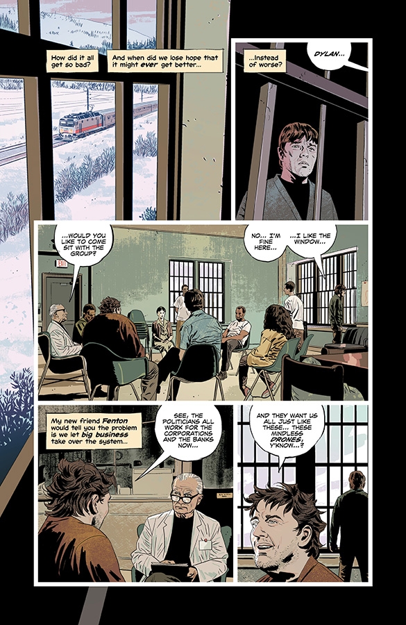 The next arc of BRUBAKER and PHILLIPS' bestselling series is a blockbuster! Dylan is forced to confront the reality of his violent actions and his sanity...and nothing will ever be the same again!