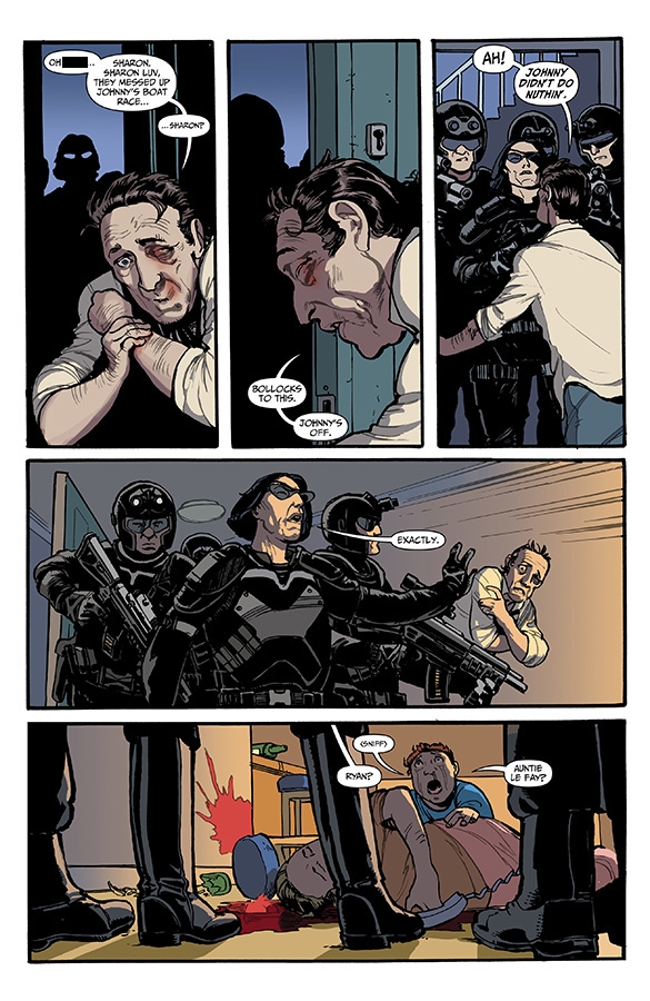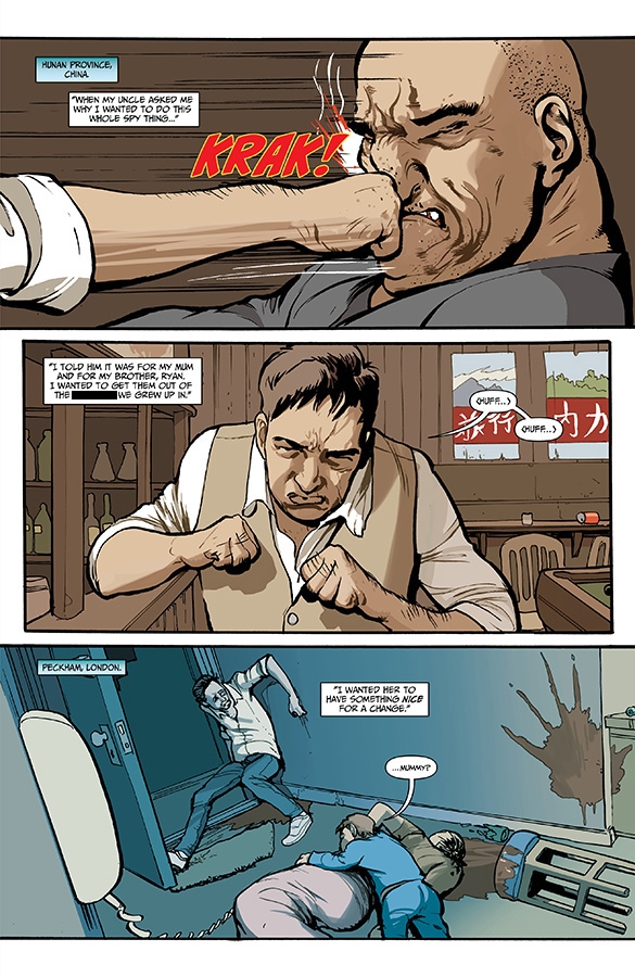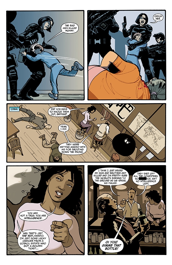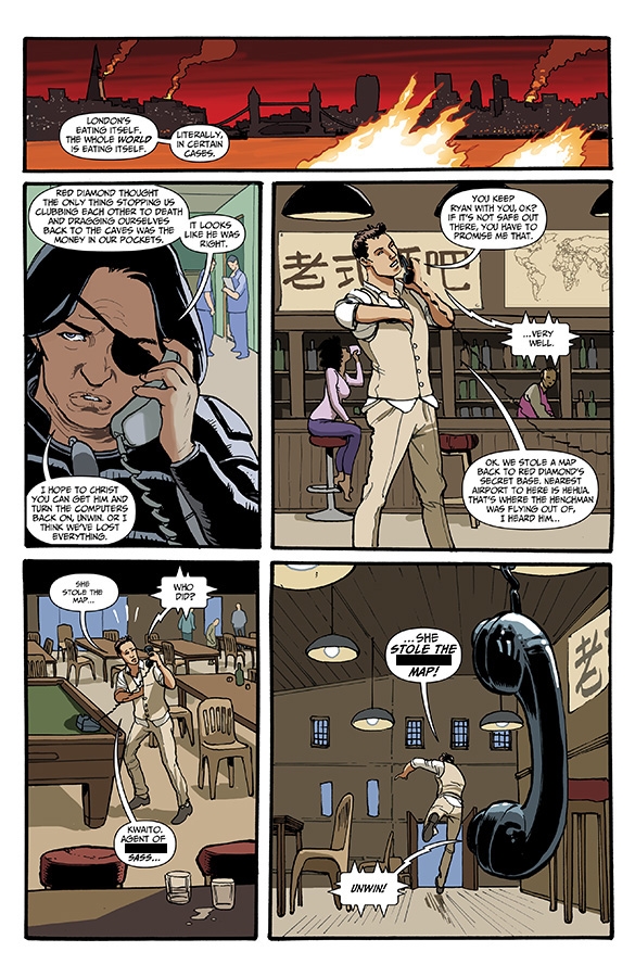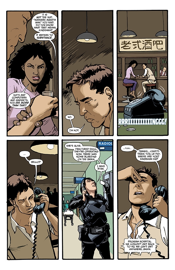 Time is running out to stop Red Diamond from seizing the world's wealth and building an empire on jewels and material riches. Lurking in his lair at the bottom of the ocean, Red Diamond plots his global takeover while rolling around naked in mounds of jewels. All computers are wiped out, civilians are rioting in the streets, and Eggsy's Mum has been beaten and left for dead. Eggsy and Kwaito are stranded in China. How's our novice spy going to get himself—and the rest of the world—out of trouble this time? Issue number five of this unstoppable, action-packed miniseries contains full-frontal nudity, explosives, submarines, and DIAMONDS.