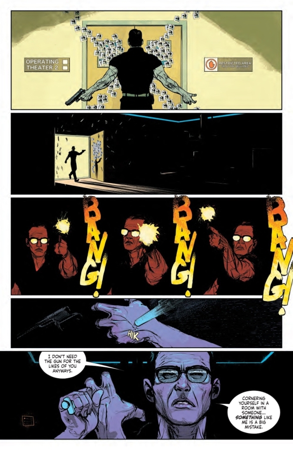 Dillinger holds Serena and Beatrix hostage in an evacuated hospital, the building now a death trap designed specifically for Sprout. The only chance Sprout has to rescue her newfound friends? A supply closet full of surgical stabby-stabby stuff.