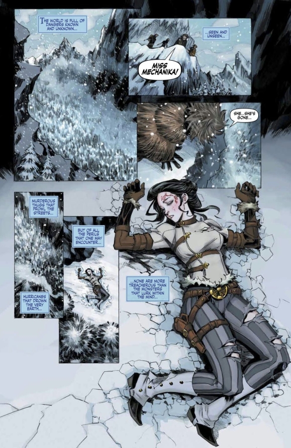 While on the hunt for a mythical lake monster, Lady Mechanika encounters dangerous creatures lurking in the Siberian mountains, but are they any more dangerous than the monsters that lurk within the mind?