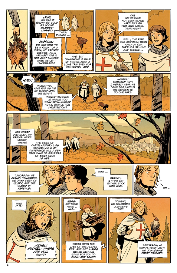 SERIES PREMIERE! It is 1220 AD, and the gears of the Albigensian Crusade grind on. When an alien spacecraft infested with a horde of bloodthirsty predators crash-lands in the remote wilderness of the French Pyrenees, a small band of crusaders and a Cathar heretic are all that stand between God's Kingdom and Hell on Earth. DOUBLE-SIZED FIRST ISSUE featuring FORTY-FOUR PAGES of story with no ads for just $3.99!