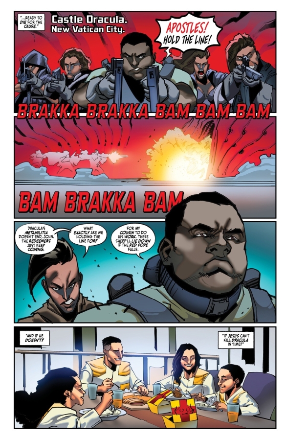 Jesus and Dracula fight to the death! When Sistine Centuria is healed by Jesus, she has her moment of redemption…and it will be her last. And while Jesus and his crew seem to have the upper hand, Dracula’s plan is in motion, and it seems impossible to stop.