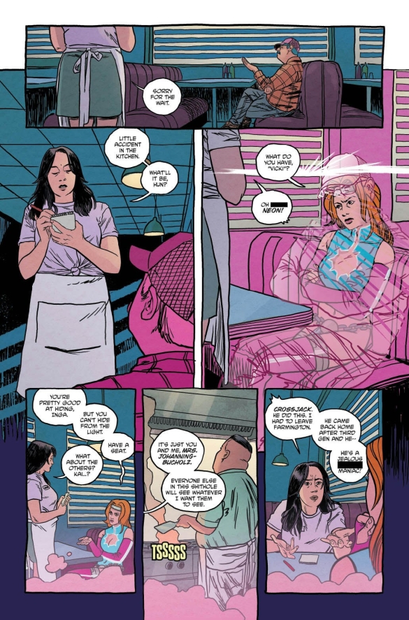 Neon peers through the pink fog to reveal her dark, violent origin.
