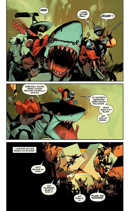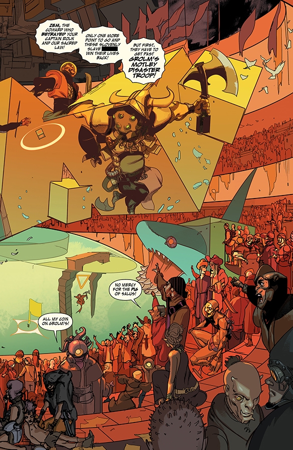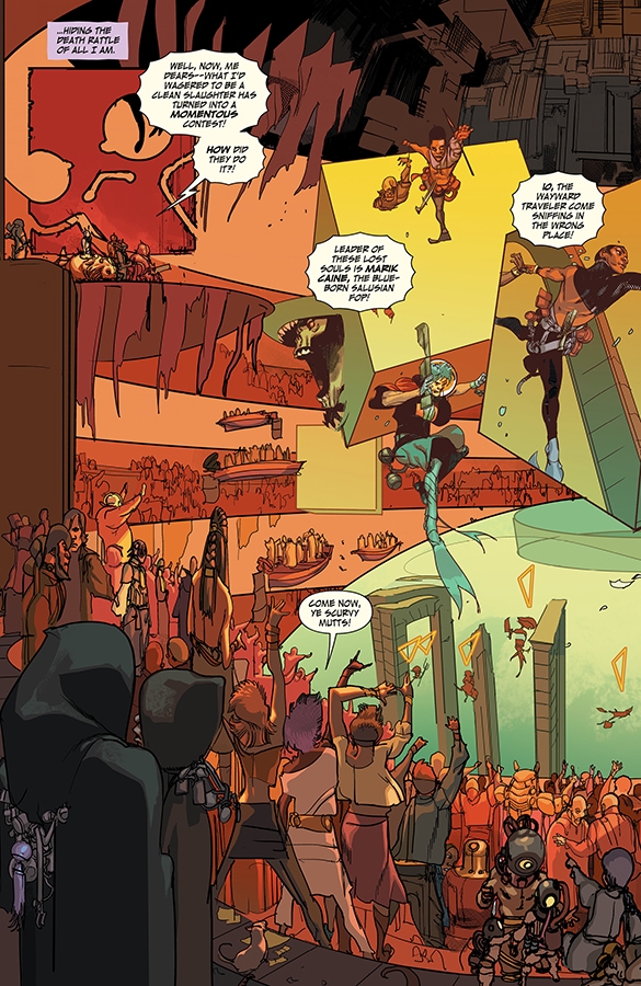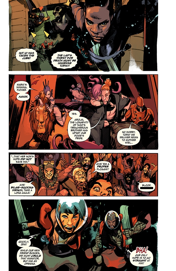 NEW STORY ARC "OUTER ASPECTS OF INNER ATTITUDES," Part One As a gladiator, Marik Caine brought the light of hope into the one of the darkest corners of the ocean before that darkness swallowed him whole. Now, a new hero arises from the fighting pits of Poluma to carry on Marik’s legacy.