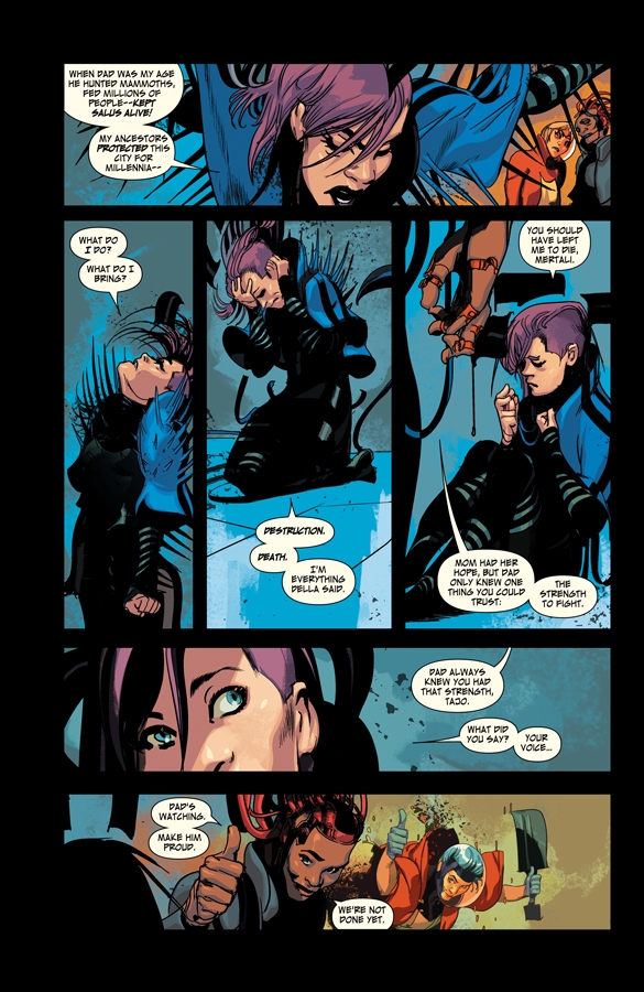 "OUTER ASPECTS OF INNER ATTITUDES," Conclusion Death comes to the drowning city as Tajo and her crew fight to inspire the citizens of Salus to not go gentle into that good night.