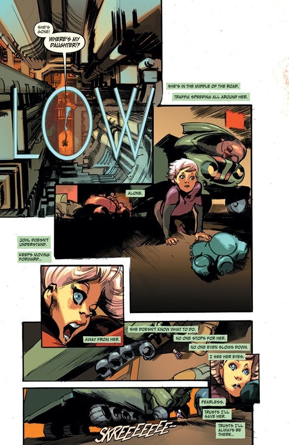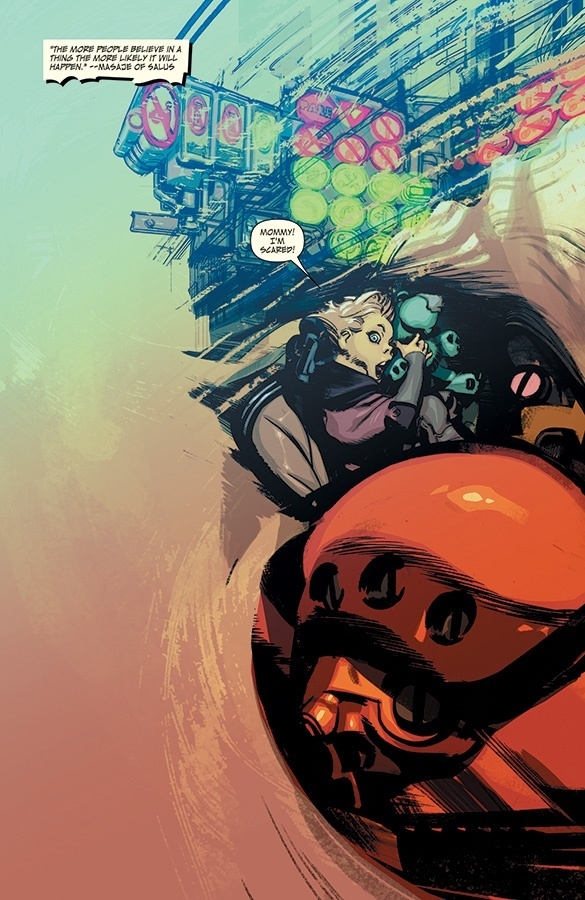 "LAST EMBERS," Part One (of Seven) It's mankind's final hour, and the reckoning rests on the shoulders of the Caine family. Stel, Tajo, and Della are on a collision course that they may not all survive. RICK REMENDER and GREG TOCCHINI bring their seminal aquatic apocalypse to a harrowing boil in a world where everything comes down to a battle between desperate hope and certain oblivion.