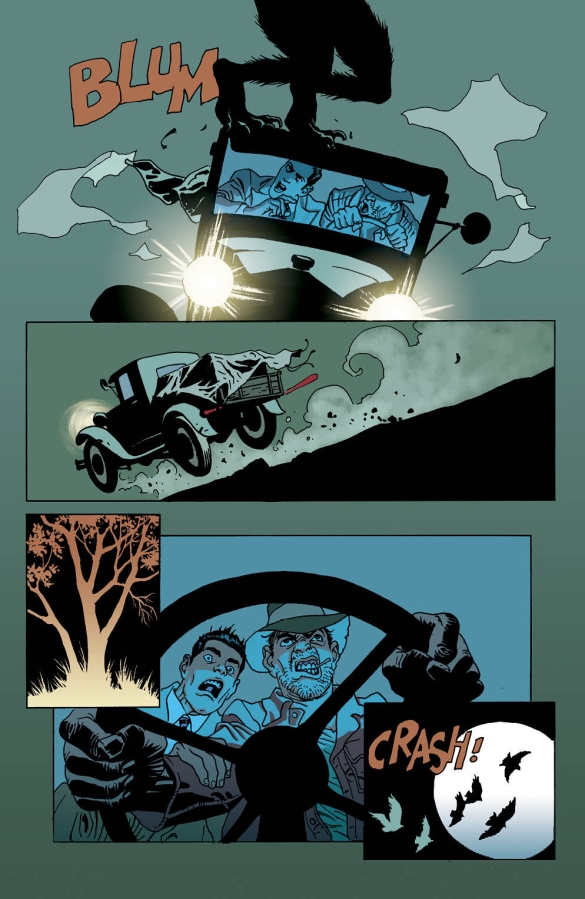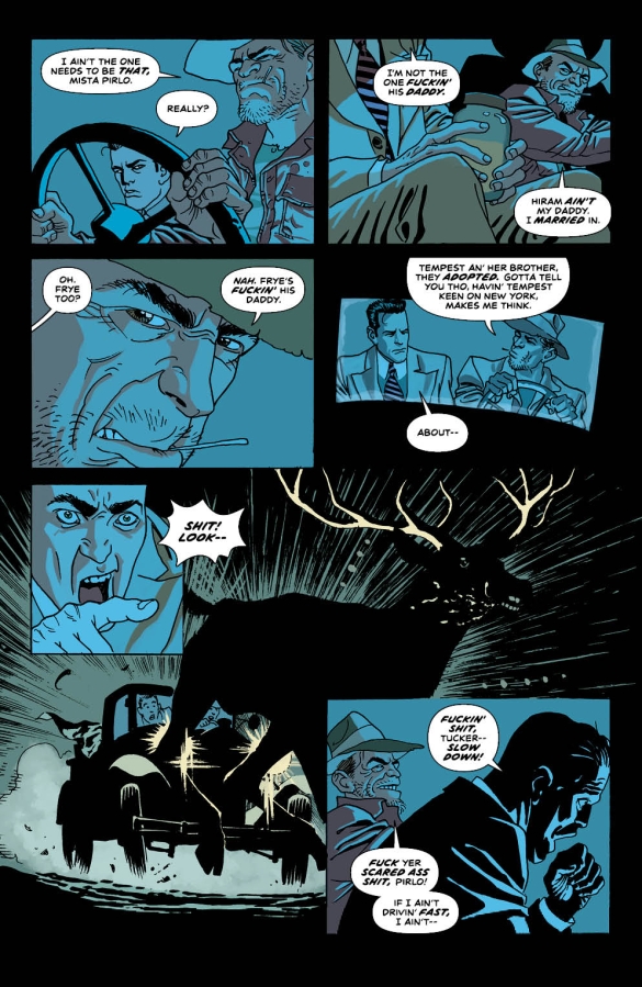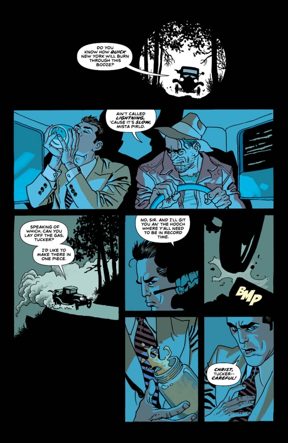 "MOONSHINE," Part Two Gangster Lou Pirlo thought he was stepping up in the NYC mob when he got sent to Appalachia to broker a big moonshine deal. Instead, he stepped right in the middle of a good ol’ fashioned family feud...and when one of the family might be a werewolf, things get bloody right quick. Continuing the new series from the legendary creators of 100 Bullets!