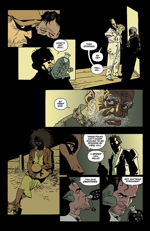 "MISERY TRAIN," Part One "Torpedo" Lou Pirlo thought his troubles might be over when he and his new girl, Delia, hopped a boxcar headed south—as far and as fast as they could get away from the hillbillies in Appalachia and the mafia killers in New York City. But trouble has a habit of sticking to Lou, and instead of finding himself on "Big Rock Candy Mountain," he’s on a down-bound train, last stop: The Big Easy, New Orleans. And trouble ain’t all that’s stuck to Lou. See, Lou got bit by a werewolf, and now the most deadly monster hunter on Earth will stop at nothing to put this dog down. The hit horror/crime series that NERDIST called "damn near perfect" is back—from the creative team behind the seminal crime drama 100 Bullets! Featuring variant covers from GABRIEL BÁ, FÁBIO MOON, RAFAEL ALBUQUERQUE, RAFAEL GRAMPÁ, and more.