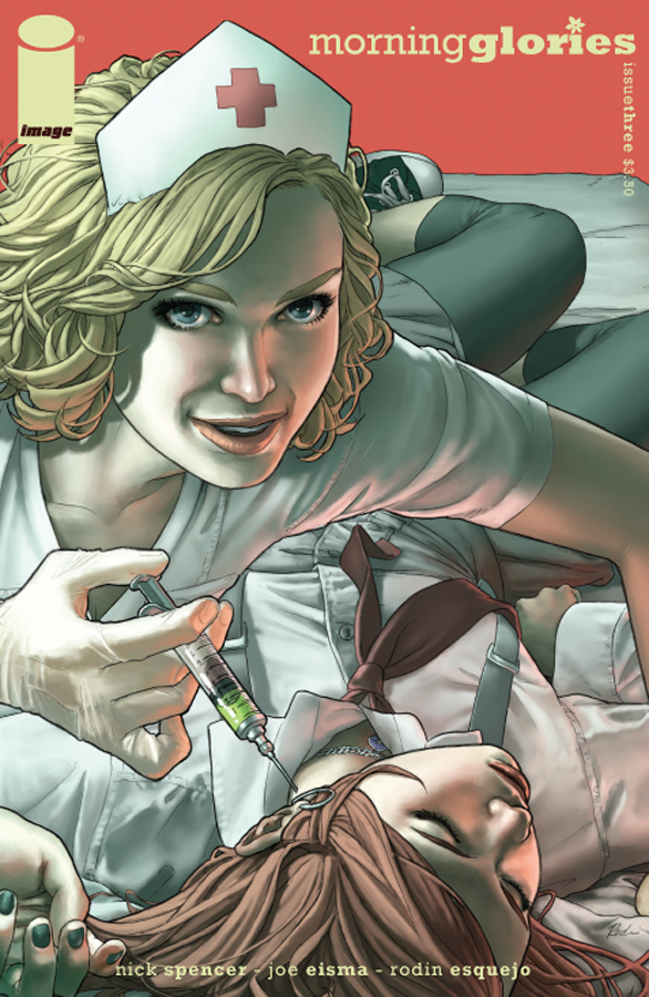 While the rest of the Glories prepare for their first day of classes, Jade finds herself trapped in the Nurse's office and about to undergo a ghastly procedure. But when she attempts to make her escape, she stumbles across the deadliest secret yet found within the hallowed halls of Morning Glory Academy! It's Runaways meets Lost from the writer of FORGETLESS, SHUDDERTOWN, and EXISTENCE 2.0!