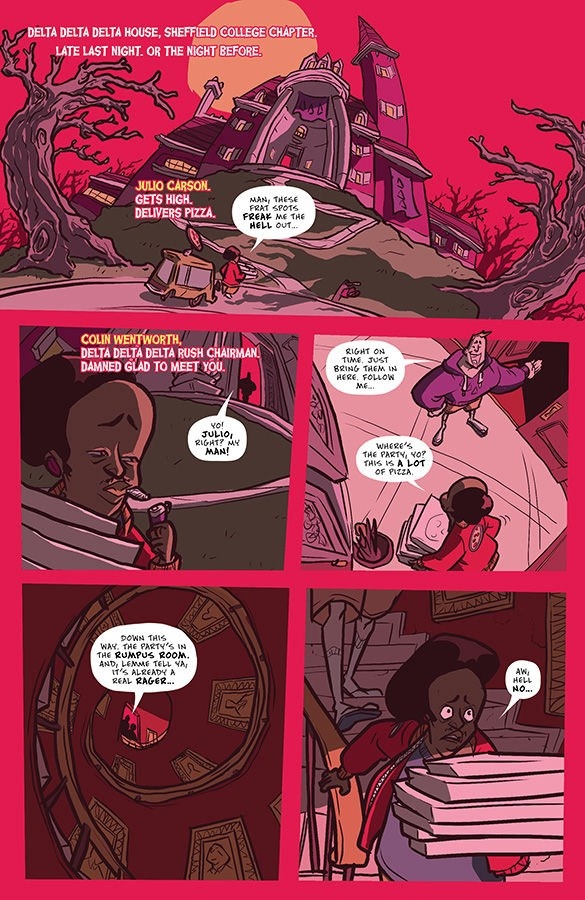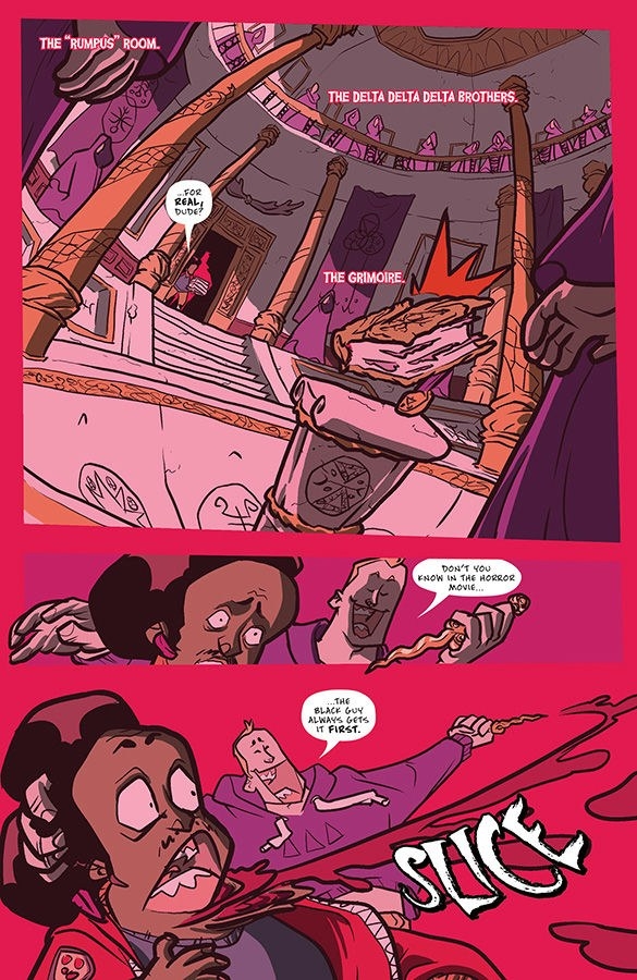 Esteemed TV writer J. HOLTHAM (Emmy-winning The Handmaid’s Tale, Marvel’s Jessica Jones) and white-hot indie cartoonist MICHAEL LEE HARRIS (Black Hitler, Choco Leche) present an Evil Dead for black nerds—a modern spin on the action-packed horror comedy for fans of BITTER ROOT and CHEW.