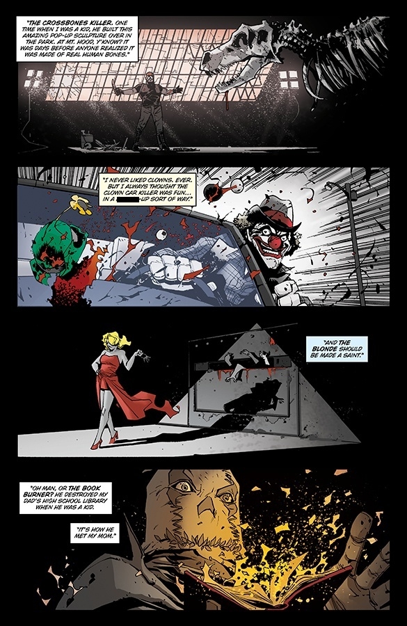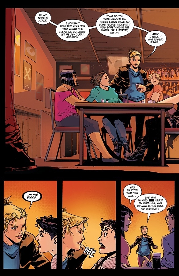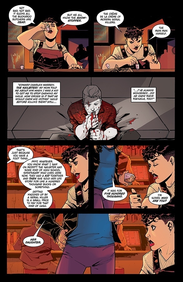 JOSHUA WILLIAMSON & MIKE HENDERSON’S CRITICALLY ACCLAIMED HIT HORROR SERIES RETURNS! Sixteen of the world’s worst serial killers were all born in the same small town…but Agent Finch and Sheriff Crane solved and buried that mystery. Didn’t they? Violent copycat murders imitating the infamous Buckaroo Butchers have begun in Portland, Oregon, and if Finch wants the killings to stop, he’ll have to team up with the daughter of the Nailbiter himself. A brand-new mystery begins in this EXTRA-LENGTH FIRST ISSUE!